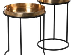 Colour: Nest of 2 Shiny Brass and Black Tray Tables